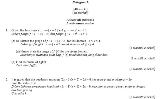 Fungsi Kuadratik Matematik Tambahan Tingkatan 4 : Soalan Matematik Tambahan Tingkatan 4 Kertas 2 Persamaan Otosection